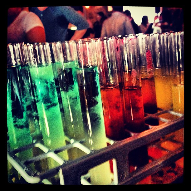 Hier soir donc, c’était l’ouverture très attendue de la Champagnerie, rue ST-Paul, dans le Vieux-Montréal. La Champagnerie est un bar hyper sympa, tout sauf snob, où on sert autant le mousseux abordable que le plus grand champagne! On peut s’y concocter des mixtures explosives avec des éprouvettes rouges, jaunes et vertes. Je me suis risquée avec la verte, qui contient de l’absinthe. Vraiment délicieux, mais ça cogne…jamais aussi bien dormi moi ha,ha,ha! On peut aussi se régaler avec des snacks gastronomiques, formule gagnante pour les 5 à 7 entre girls! Et la possibilité de sabrer la bouteille de champagne…oui, oui, avec un vrai sabre!