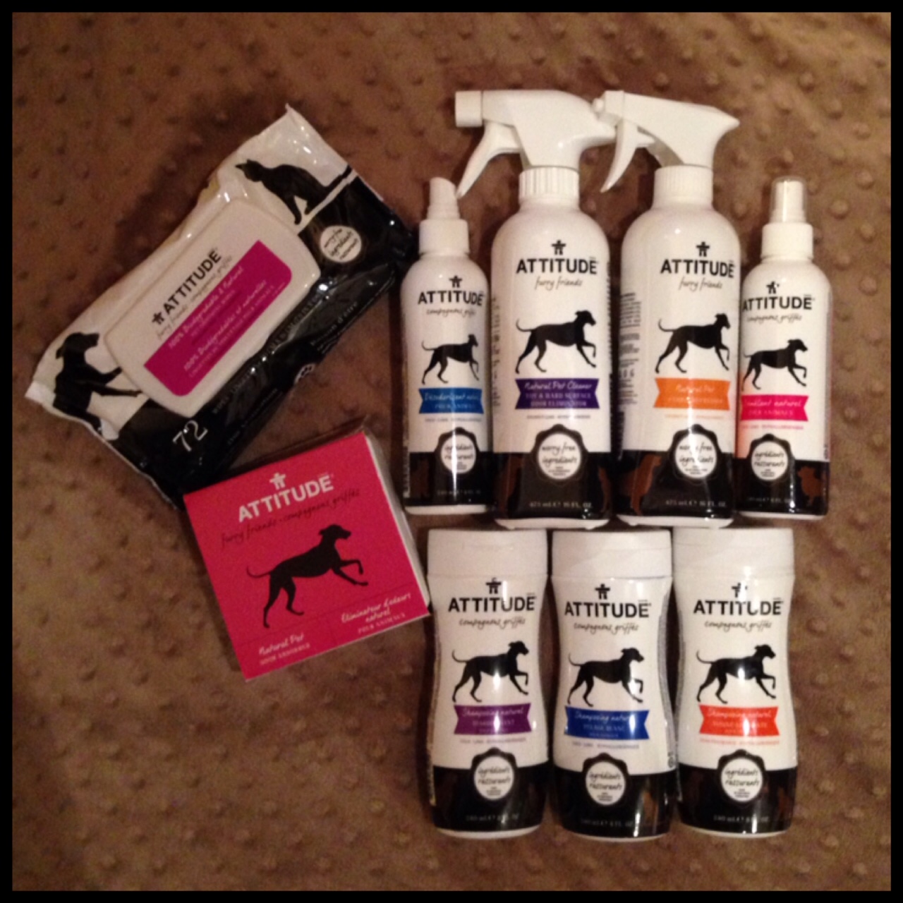 Oh! C’est le fun… Tornade rousse a reçu des produits de beauté pour les chiens. Lyne qui n’a pas (encore) de chien m’a remis la nouvelle gamme de produits ATTITUDE Compagnons Griffés. Connu pour leurs produits d’entretien ménager et soins corporels pour les humains, voilà qu’ils ont mis sur le marché une gamme écologique pour les animaux. En tout, neuf produits soit trois shampoings, un démêlant, un désodorisant, des lingettes, un nettoyant de jouets, un désodorisant textile et un éliminateur d’odeurs.