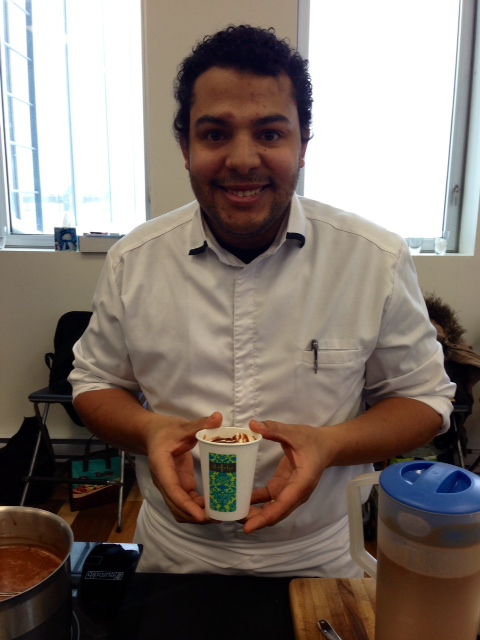 Pour 3$, vous pourrez déguster un délicieux chocolat chaud concocté avec amour dans plusieurs boutiques et restaurants participants. Pour chaque potion chaude magique vendue, 0,50$ sera remis à La Tablée des Chefs. En tout, 22 établissements participent à l’événement, dont plusieurs que j’ai déjà eu le plaisir de visiter: Fous Desserts, Patrice Pâtissier, La Fabrique Arhoma et plusieurs autres qu’il me reste à découvrir. Faites vous plaisir, en famille, avec des amis ou même seul et ne soyez pas gêné d’en essayer plusieurs! Voici Johan Crop de À la folie et son choco dingo!