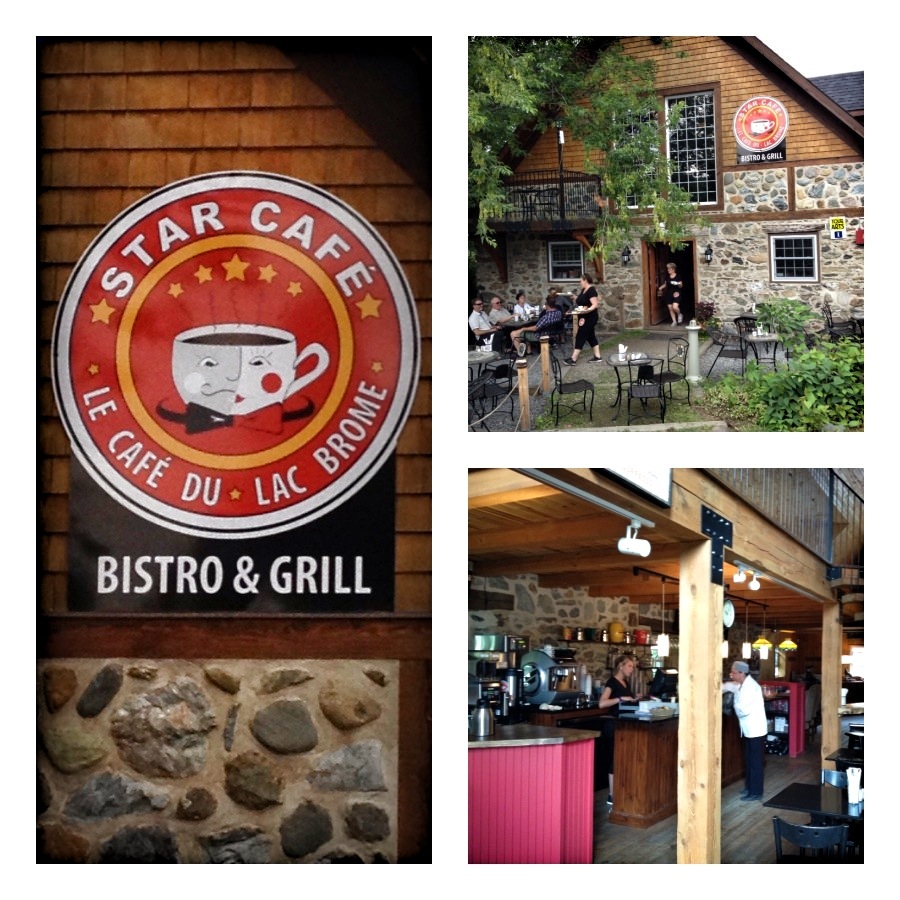Voici le restaurant où on va souper en tête-à-tête. Une petite maison sans prétention, au décor chaleureux qui me rappelle la maison de ma grand-mère. On se sent vraiment chez nous. Le service est vraiment personnalisé, le proprio André Charbonneau, prend lui-même les commandes, après nous avoir expliqué en détail son menu du jour….et en nous racontant les dernières histoires du voisinage. 😉 La spécialité de cet établissement ouvert depuis déjà 30 ans, c’est le canard du Lac Brome. À chaque fois que j’y vais, je savoure le délicieux confit de canard qui fond dans la bouche. L’homme préfère la côte de veau de Charlevoix. Un joli menu dans lequel tout est délicieux et sans prétention. On termine le repas sur la terrasse en sirotant un digestif et en écoutant André nous raconter les 2 visites de Marlon Brando, qui était alors en tournage à Glen Sutton. Irrésistible!