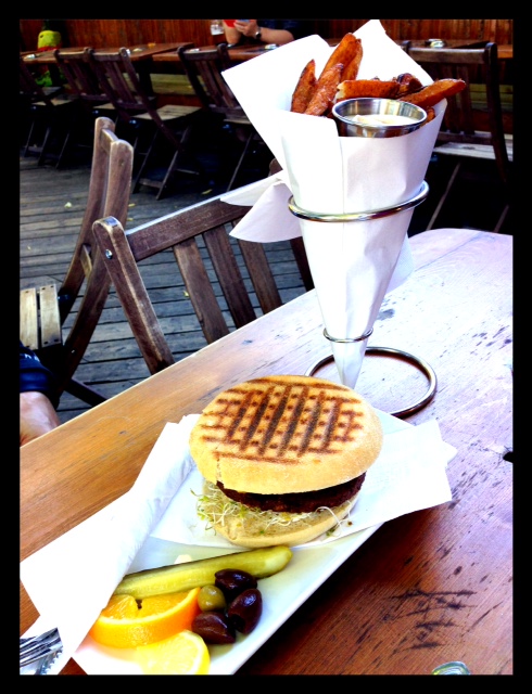 Le végé burger est fait avec beaucoup d’attention , la boulette est composée entre autre de millet, quinoa, tofu, levure alimentaire, tamari et servi avec une savoureuse relish de maïs maison et elle est cuite au four. N’oubliez pas les frites… un délice! Le reste du menu est aussi assez varié.