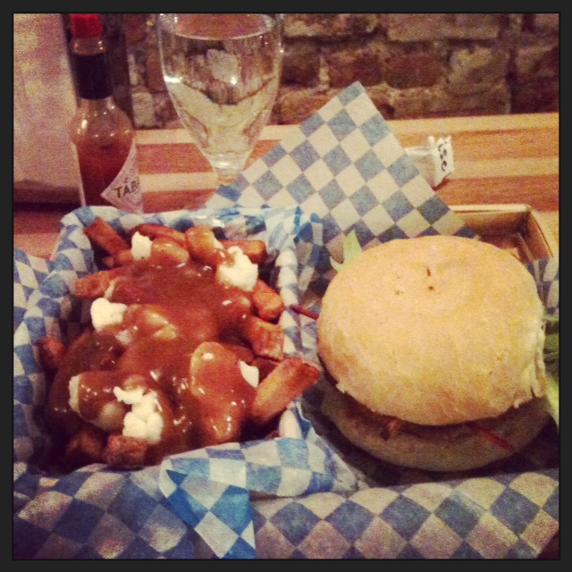 La spécialité de la maison: le fish & chips. Vraiment très bon mais je suis surtout ravie de trouver sur le menu un végé burger et une poutine végétarienne!!! Bravo!