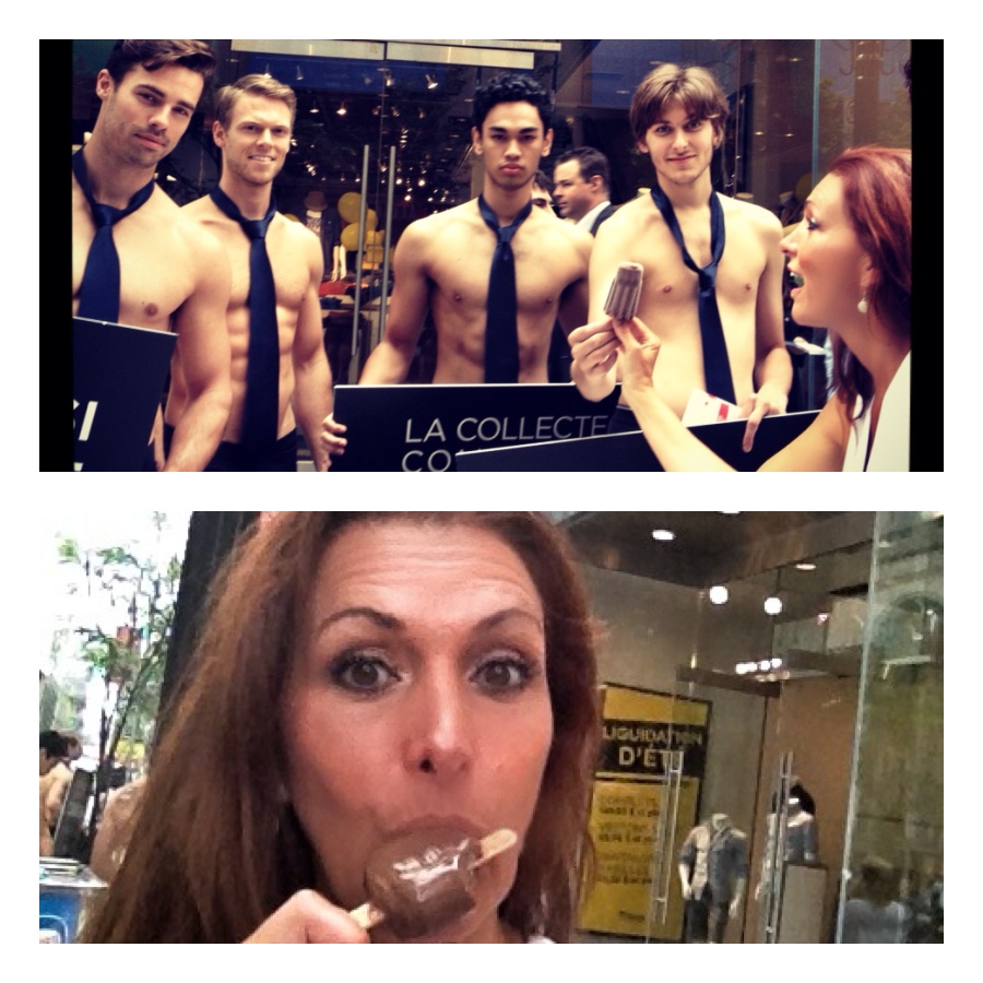 Mardi le 2 juillet avait lieu, en simultané dans 4 villes canadiennes, un « stunt » pour attirer l’attention sur la 4e Collecte de complets organisée par Moores. Imaginez la scène: en plein centre-ville de Montréal, au Square Phillips sur l’heure du lunch, 7 mannequins mâles se sont dévêtus et ont déambulé en boxer avec leur bas noirs et souliers de bureau en pleine rue Ste-Catherine! En plus, les beaux garçons remettaient aux passants des barres de crème glacée au chocolat. Vous auriez dû voir la tête des passants…et le sourire des dames! 😉