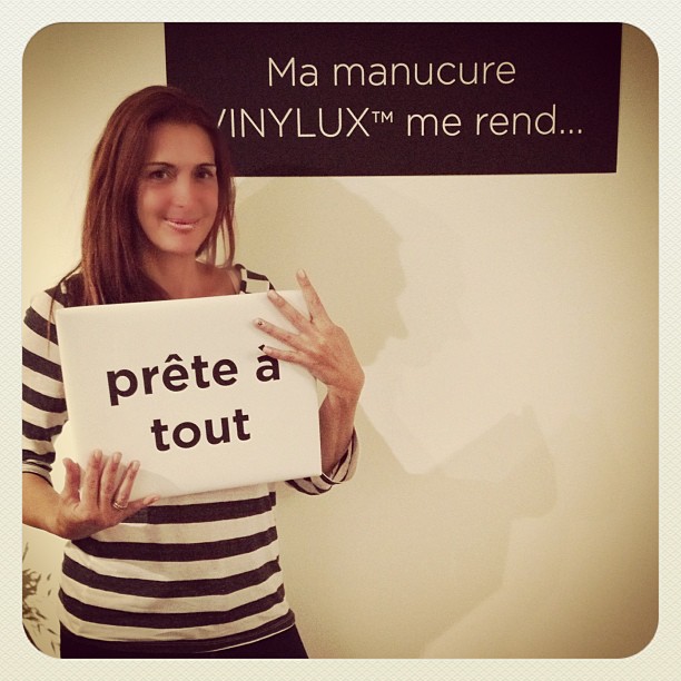 9h30. Arrivée au Rouge Nail Bar sur la rue Peel pour un joli manucure CND Vinylux avec un nouveau vernis longue tenue. Je choisis une couleur pâle et classique mais je regarde le nail art black & gold sur Julie assise sur le banc d’à côté et je l’envie. Mais bon, avec ce qui s’en vient dans les prochains jours, je n’ai pas le choix. Je me permet quand même une petite fantaisie sur l’annulaire gauche. 😉