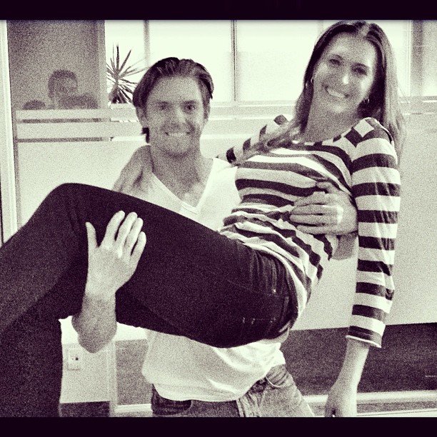 Piqué ensuite une jasette avec un autre pilote, Benoit Sansoucy, qui attendait son tour pour se faire poudrer et habiller. Super gentil garçon qui me racontait sa fascination pour la magie du voyage qui nous permet de nous retrouver, en quelques heures, à l’autre bout de la planète pour découvrir d’autre horizons. Benoit s’apprêtait à « faire des pompes » avant la prise de vue et m’a donné son truc beauté: l’huile pour bébé pour bien faire ressortir ses muscles en photo. Il adore s’entraîner et a vraiment un corps d’enfer. Pour me prouver que ce sont des vrais muscles, il a insisté pour me soulever dans ses bras à la manière de « An officer and a gentleman! » Comment résister!!!