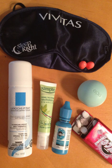 J’avoue que le matin, j’étais un peu fatiguée avec le décalage horaire et le guide privé très actif, et que j’avais donc sbesoin de mes produits de beauté défripants! En me levant, je me faisais un masque lissant pour le visage et un masque lissant pour les yeux de GUINOT et hop, on partait pour la journée! J’ai appris, avec le temps, que lorsque tu voyages de soir pour l’Europe et que tu arrives en plein jour, il faut dormir dans l’avion le plus possible. Mon kit comprenait tout ce qu’il faut pour un dodo de minimum 5 heures: oreiller gonflable, couverture, bas d’alpagas, bandeau sur l’oeil et bouchons d’oreilles, Zzzz… Pour le retour, en plein jour c’est différent; cette fois ma trousse comprenait des trucs rafraîchissants comme l’eau thermale, le Eye Roll-On de Simple, un sérum hydratant, un hydratant pour les lèvres EOS et des gouttes hydratantes pour les verres de contact.
