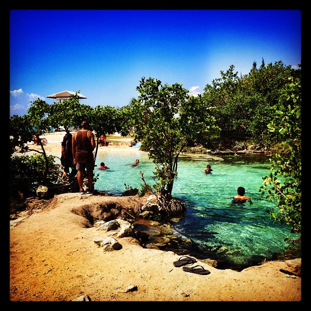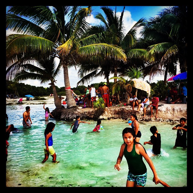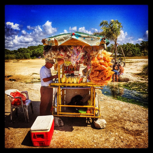 On s’est beaucoup baigné dans un lagon ou une piscine naturelle d’eau douce qui se joint à la mer. L’endroit paradisiaque était situé à 5 minutes de notre hôtel, sur la plage publique des mexicains. Le mignon y a fait de l’apnée à tous les jours. Et il en a profité pour goûter à des grignotines mexicaines achetées au charmant monsieur qui s’y installait à tous les matins.